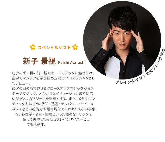 「ブレインダイブ!」で大ブレーク中のマジシャン新子景視さんや、