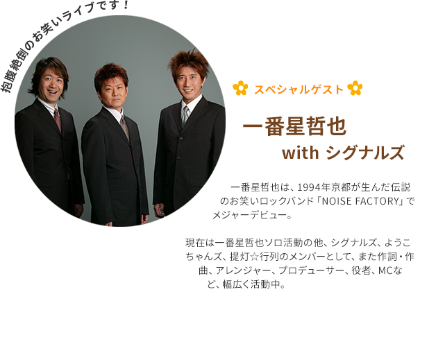 抱腹絶倒お笑いライブの一番星哲也withシグナルズのライブや大抽選会など、